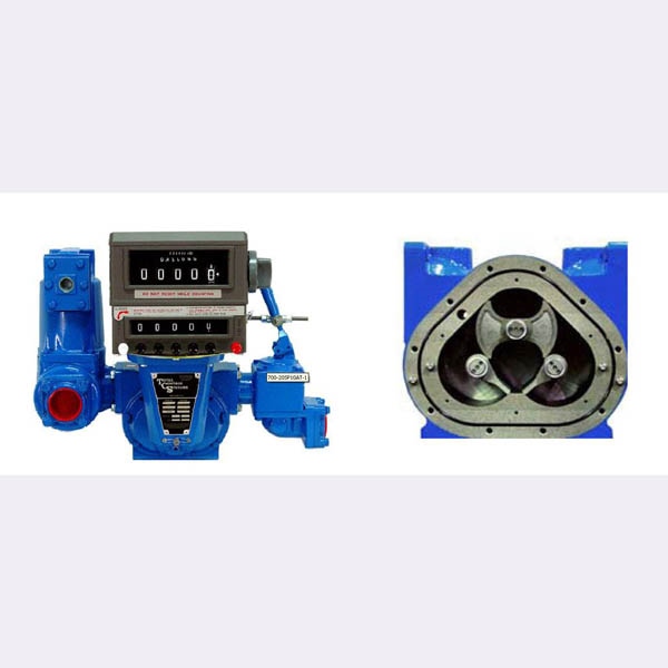 當有流體通過流量計時,在流量計進出口流體的差壓作用下,推動刮板與轉子旋轉.到圖2一6(1)的狀態,刮板A和D由凸輪控制全部伸出轉子圓筒,與計量室內壁接觸,形成密封的“斗”空間(計量室),將進口的連續流體分隔出一個單元體積。此時,刮板C和B則全部收縮到轉子圓筒內。在流體差壓的作用下,刮板和轉子繼續旋轉到(2)的狀態,刮板A仍為全部伸出狀態,而刮板D則在凸輪控制下開始收縮,將計量室中的流體排向出口。在刮板D開始收縮的同時,刮板B開始伸出。當旋轉到狀態(3)時,刮板D全部收縮到轉子圓筒內,而刮板B由凸輪控制全部伸出轉子圓筒與計量室內壁接觸,B, A之間形成密封空間,將進口的連續流體又分隔出一個單元體積。旋轉到狀態(4)時,隨著刮板A開始收縮.計量室內的流體又開始排向出口。接著依次是刮板C, B和刮板D,C形成密封空間,然后回復到狀態(1)由刮板A,D形成密封空間。轉子旋轉一周,共有4個單元體積的流體通過流量計。只要記錄轉子的轉動次數N,同樣可以用式 V=4Nv來表示通過流量計的流體總量。也可以用三對刮板組成流量計